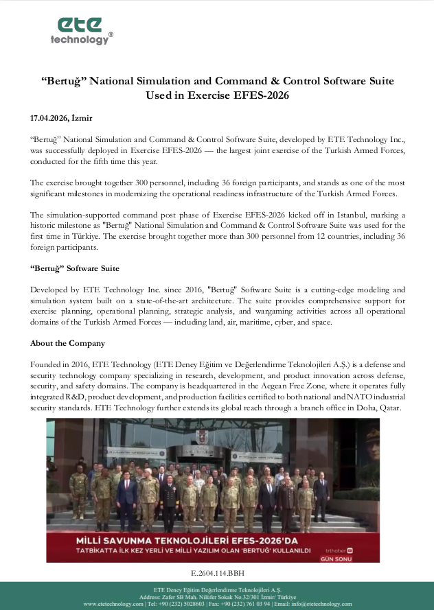 Since 2016, ETE Technology Inc has been delivering reliable, agile and practical data science support in the fields of security, safety and defense. Its deep technology products and services are the results of continuous research, development and productization by highly experienced academicians, engineers and practitioners. The company offers high performance and quality solutions to its customers. Its business processes and patented product portfolio are fully compliant with international standards. The company considers both customer and employee satisfaction among its top priorities.